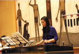 植樹式のメモリアルコンサートで「TREE」を演奏する小松玲子さん