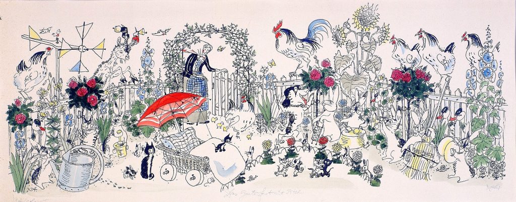 りぜっとおばあさんの庭には色とりどりの花が咲き、ねこにやぎにうさぎににわとり、いぬにあひる、みんな楽しそうに暮らしています。