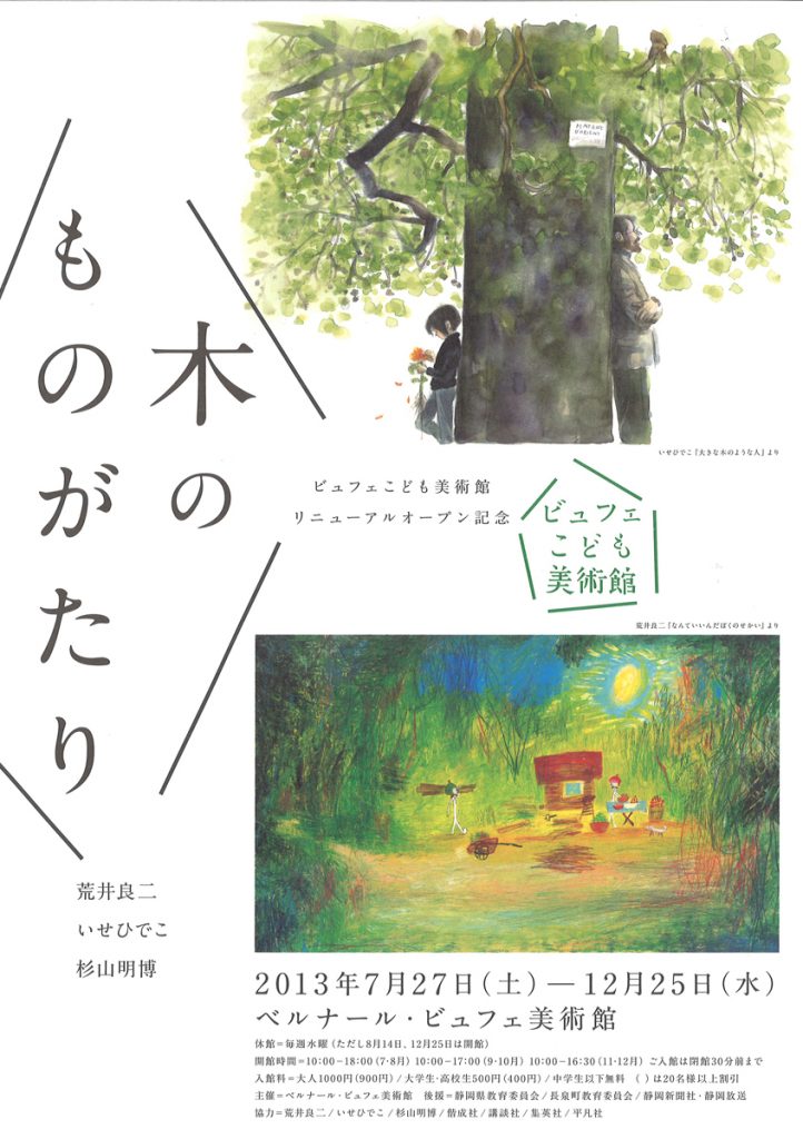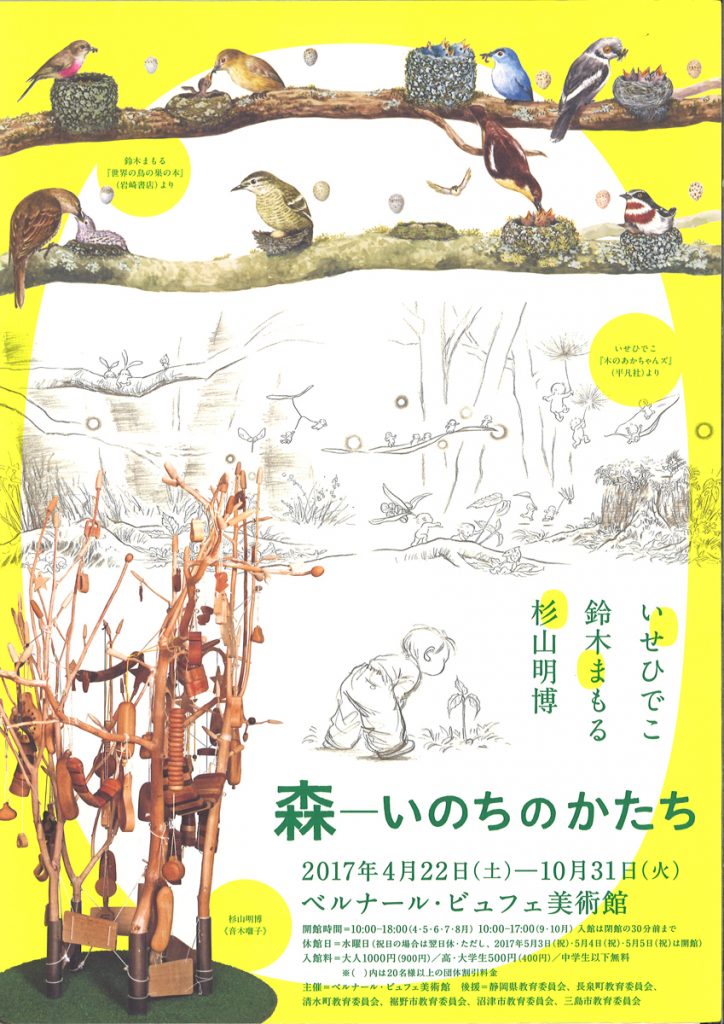 いせひでこ、鈴木まもるの絵本原画やタブロー作品、杉山明博の木の造形作品を通して「いのちのかたち」に触れる。木と人とのかかわりについて、森がはぐくむいのちについて、深く見つめ、表現する作家三人の展覧会。