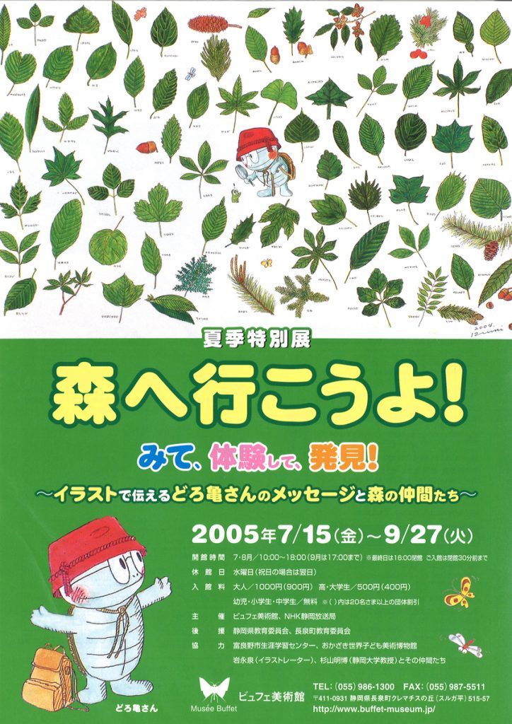 北海道の富良野で森の研究を続けるどろ亀さんこと高橋延清(東大名誉教授)の詩、岩永泉氏のイラストを紹介しながら、自然の大切さや森が私たちにとって不可欠な存在であることを知る展覧会。杉山明博の触れられる鳥の作品も多数登場。