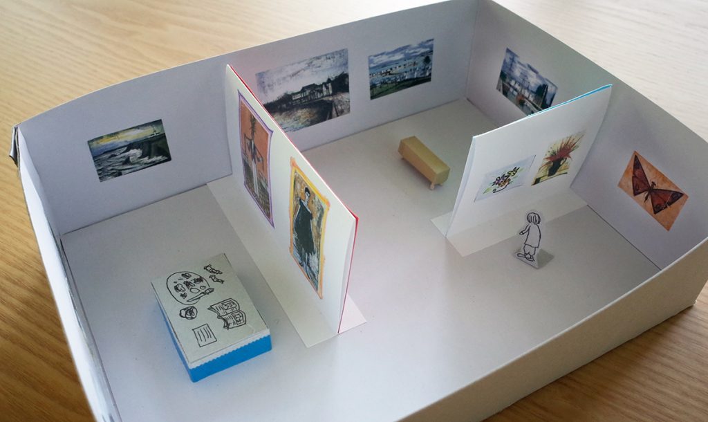 箱を美術館の展示室にして、壁に作品を展示してみてください。